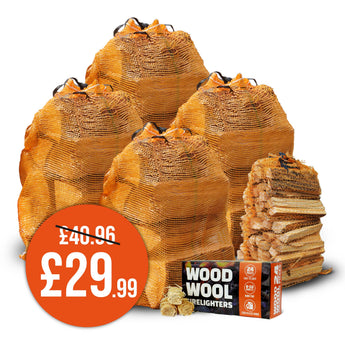 Find exceptional value in our Kiln Dried Hardwood Winter Warmer bundle! Get everything you need to keep your home warm this winter, including 4 bags of our Kiln Dried Oak Hardwood Logs, a net of Kiln Dried Kindling & a 24 piece of Wood Wool Firelighters.